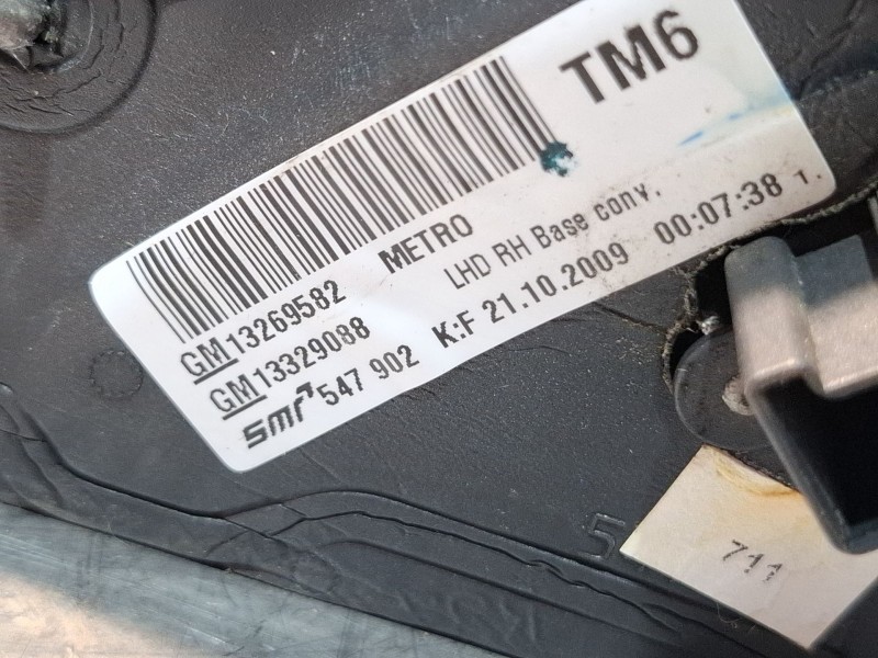 Este recambio ESPEJO RETROVISOR DERECHO ELECTRICO 13269582 usado procede de un vehículo dado de baja y ha sido seleccionado para garantizar un estado correcto antes de su venta.