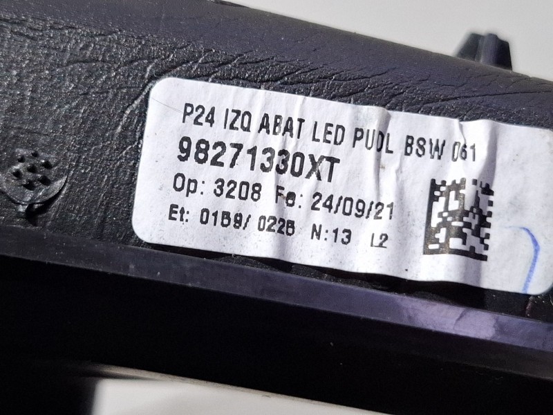 Este recambio ESPEJO RETROVISOR IZQUIERDO ELECTRICO 98271330XT usado procede de un vehículo dado de baja y ha sido seleccionado para garantizar un estado correcto antes de su venta.